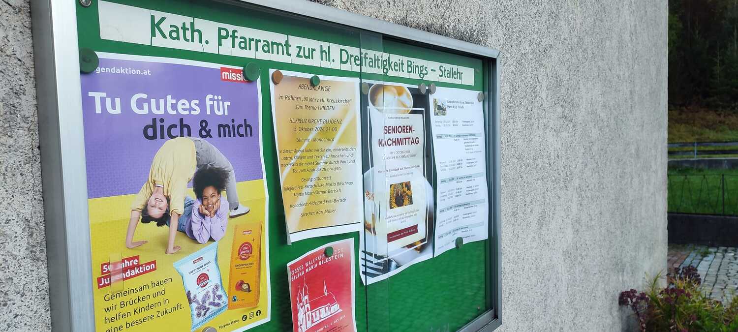 Willkommen auf der neuen Website der Pfarre Heilige Dreifaltigkeit Bings-Stallehr-Radin! Hier finden Sie Infos zu Gottesdiensten, Veranstaltungen und Angeboten. Wir freuen uns auf Ihren Besuch!