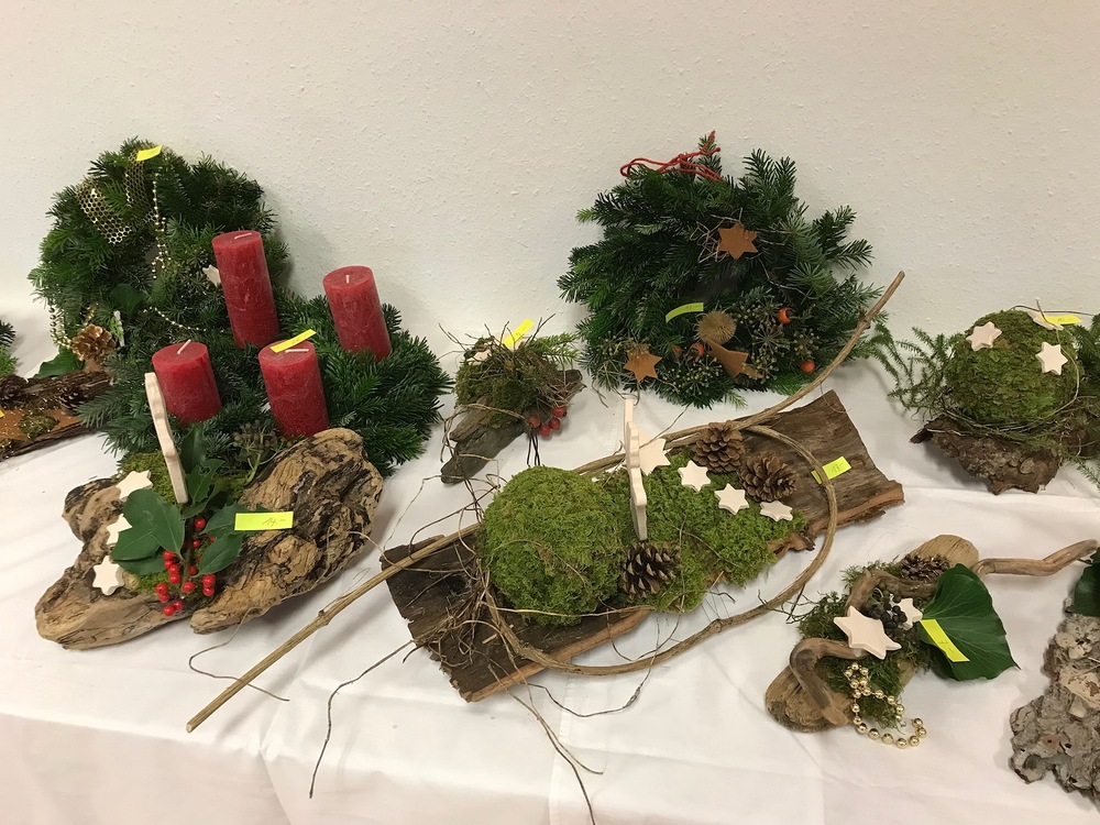 Am 25. und 26.11.2023 fand der Adventmarkt im Pfarrsaal statt. Viele Besucher deckten sich mit Adventkränzen, Gestecken und ersten Weihnachtsgeschenken ein. Auch die Gelegenheit zum Gespräch und gemütlichen Beisammensein bei Kuchen und Kaffee wurde gut genutzt.