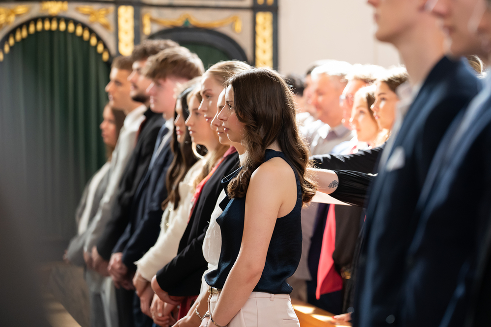 Den Abschluss bildete am 24. Mai die Firmung der Gruppe des „Langen Firmweg“ in der Pfarrkirche Schoren. Die Jugendlichen hatten sich über dreieinhalb Jahre gemeinsam vorbereitet. Jeder wählte ein persönliches Bibelwort, das in die Lesung eingebunden wurde. Die Feier mit Bischof Benno und der Musik von ‚Voiced in Faith‘ war ein stimmungsvoller und eindrucksvoller Abschluss des Firmmonats.